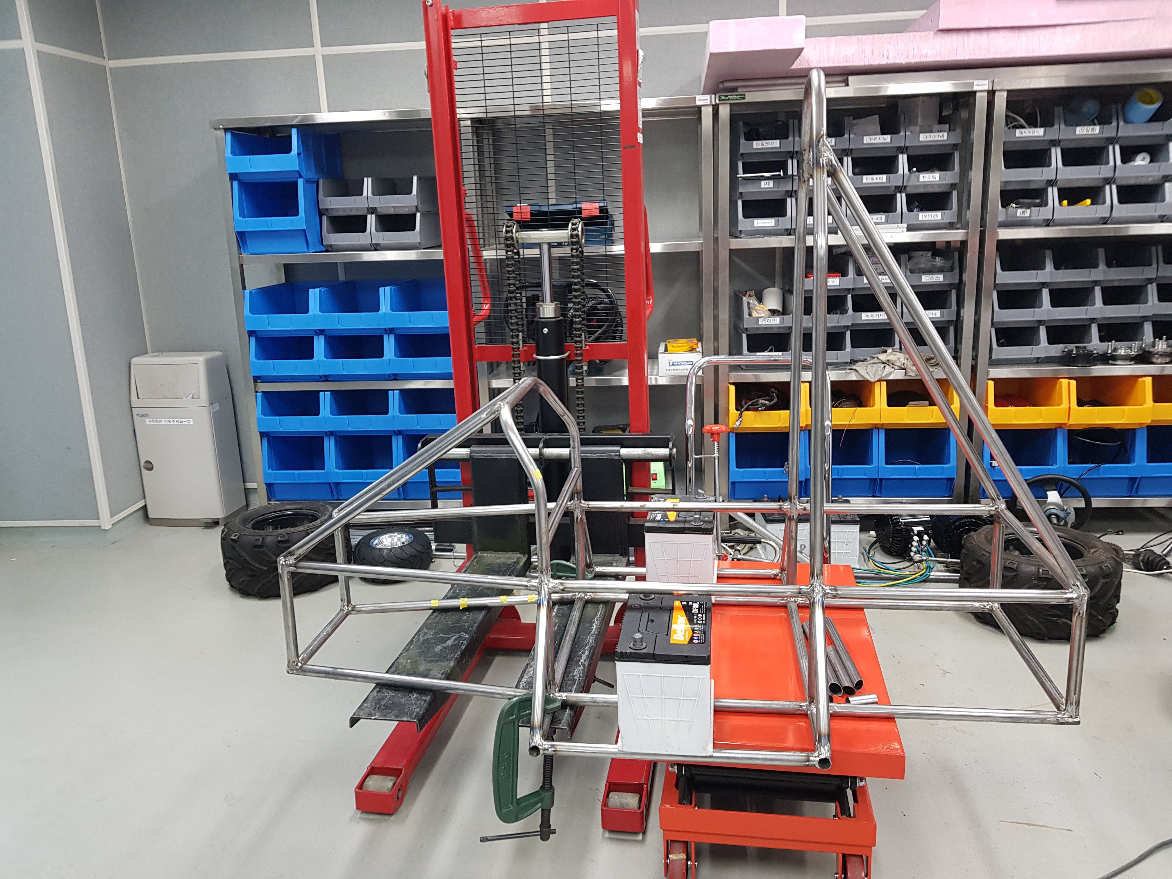우여곡절 끝에 드디어 자동차 프레임이 완성되었다.